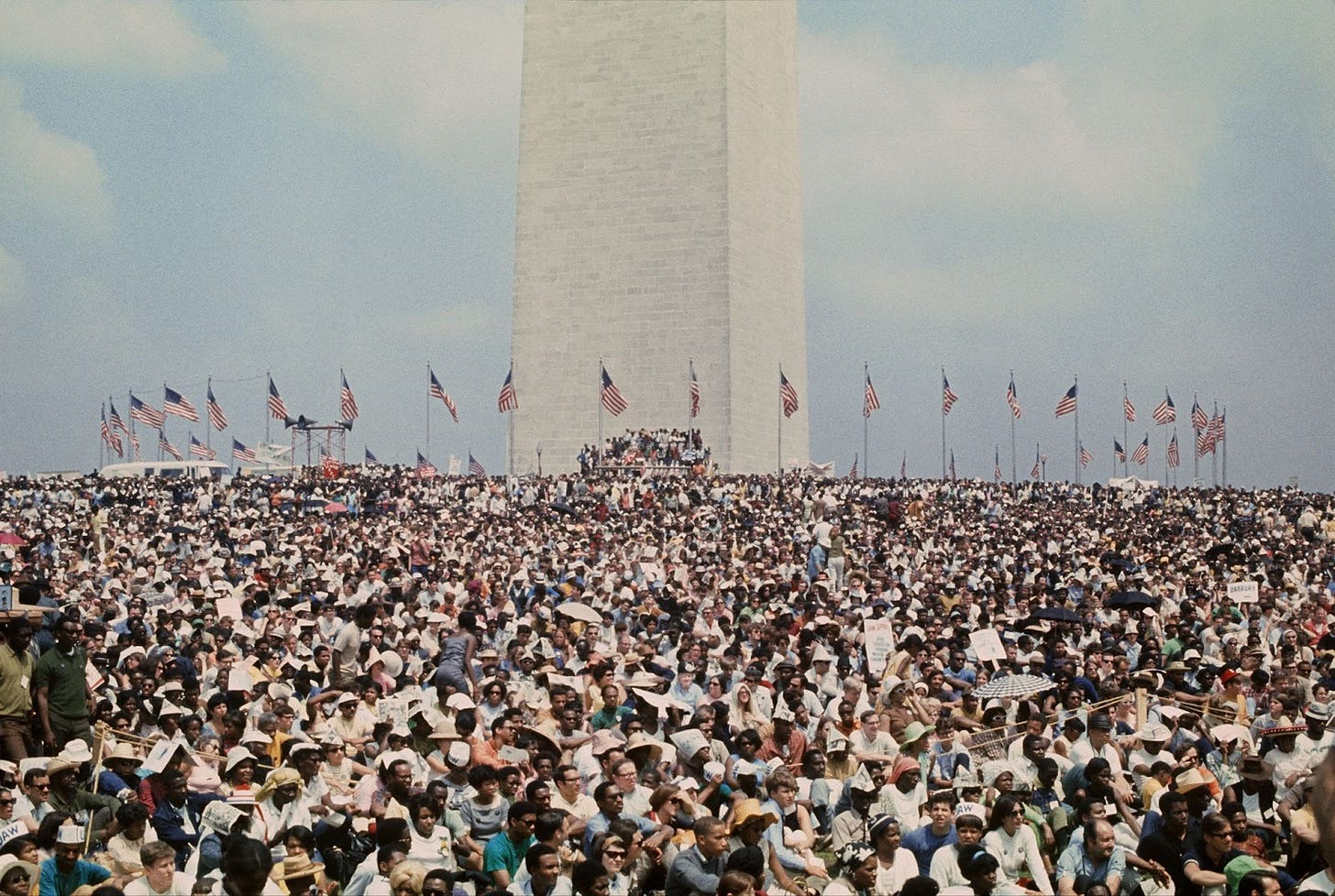 It seemed like something of a letdown to many at the time, as if he were retreating from the most important battle. To a new crop of more radical Black activists this was one more example of King being insufficiently “militant.” Stokely Carmichael thought the approach undermined a Black sense of solidarity. Local activists reported that poverty felt abstract compared to focusing on race or the vote. Many people were uncomfortable identifying as “poor.” I must admit having often had a guilty sense that the Poor People’s Campaign was something of an anticlimax in King’s career. If Black is the hardest race to be in America, a part of me thought that, in 1968, surely any campaigns of reform would have treated us as first in line. I always checked that impulse, but the point is that I had to.