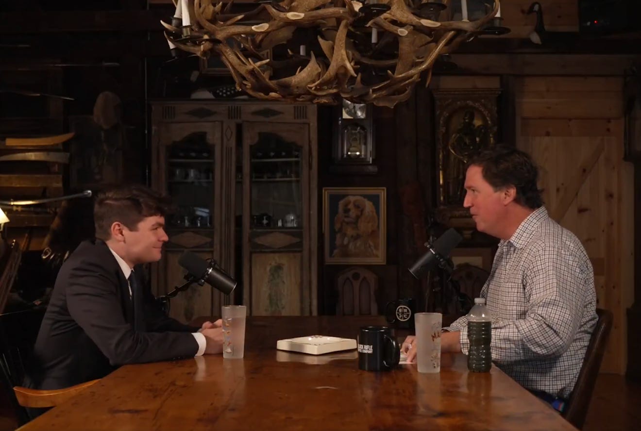 For those blissfully unaware of the events of last week: Despite a history of mutual animosity between them, Carlson invited Nick Fuentes, the leader of the online far-right Groyper movement, onto his Twitter/X-based talk show and conducted a lengthy interview with him.